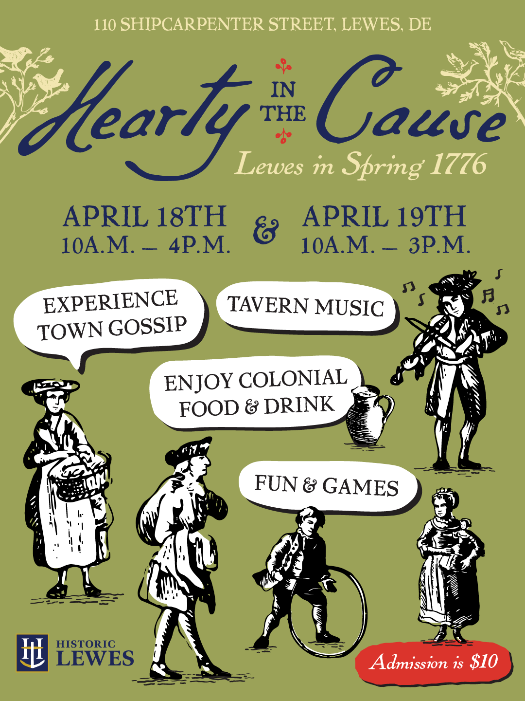 In this annual living history event, join Historic Lewes as we explore the “season of independence” in 1776 Lewistown. Visit with reenactors as they recreate the personalities and experiences of everyday people reckoning with extraordinary times: hear the talk around town, see trades and crafts in practice, and get hands-on with history!